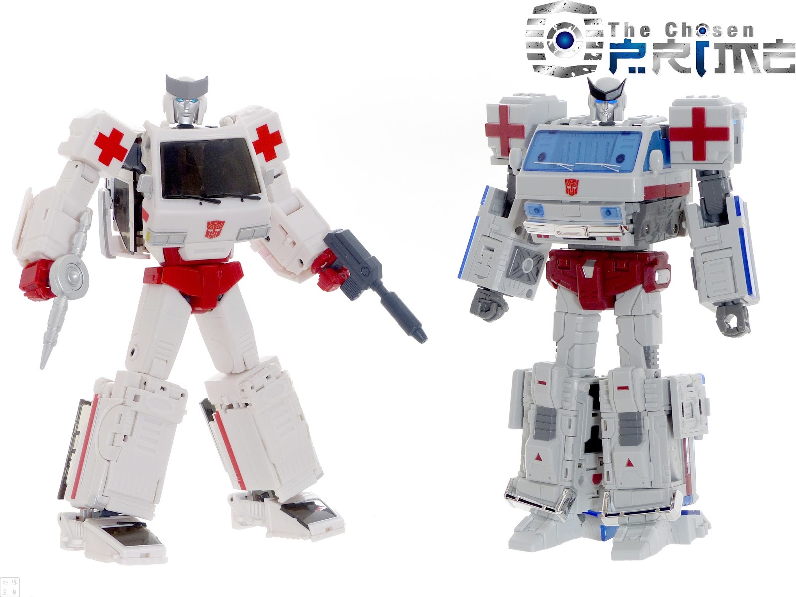 For now, I'm placing Salus on my Masterpiece shelf. He's definitely too large for my CHUG shelf. Once Masterpiece Ratchet arrives, I'm not exactly sure where Salus will end up. I suppose if you don't like having mold mates, he will serve on a Masterpiece display next to Masterpiece Ironhide, or vice versa if you wait for both companies to release their next figures. Salus is not a bad figure. I hope that VooDoo Robots won't turn out to be a one hit wonder and that they have a chance to help fill out the gaps in the Masterpiece line.
